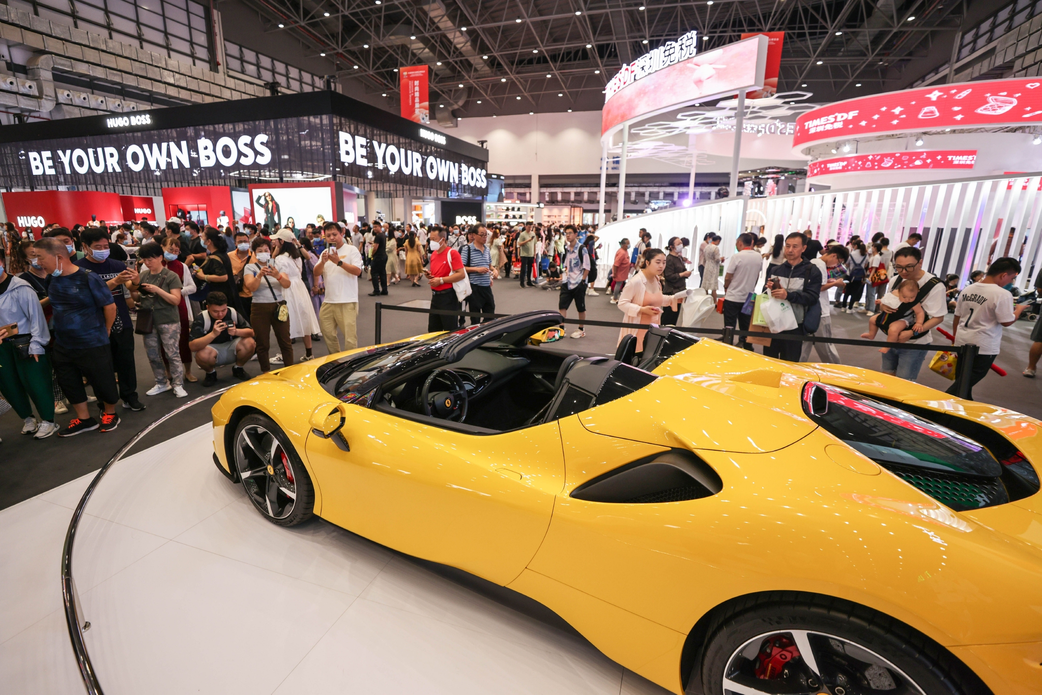 这是第三届消博会意大利馆展出的跑车。新华社记者张丽芸 摄